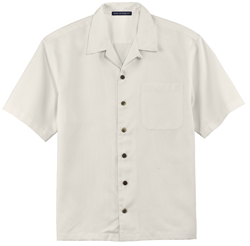 A luxurious blend of cotton and rayon makes these silky camp shirts ideal for business or relaxing aboard in high style. With wood-tone buttons down the front, the men's version has a large chest pocket with a roomy cut, while the ladies features a fitted silhouette with front and back contour darts. | ||